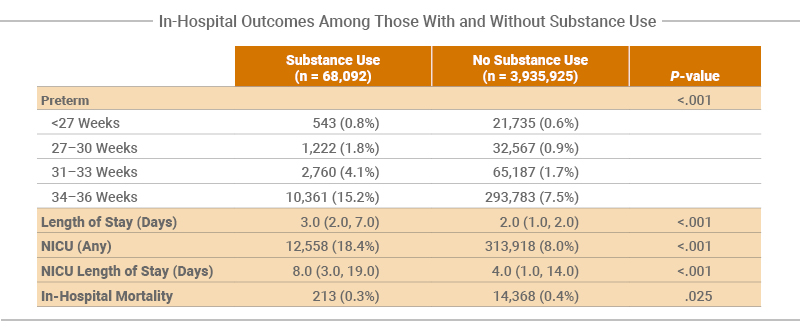 To better characterize NICU use patterns, this analysis examined newborn clinical outcomes, postdischarge readmissions and social vulnerability using recent nationwide inpatient data from the Vizient CDB. These findings were presented at the 2026 Pediatric Academic Societies Meeting, 2025 American Public Health Association National Annual Meeting and Expo, and 2025 American Academy of Pediatrics National Conference and Exhibition. (Click the following links to access the presentations and poster on these topics: NICU substance use; NICU readmissions; NICU utilization poster.)